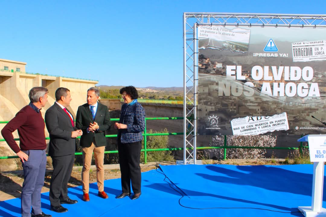 El acto de presentación tuvo lugar en la cuarta presa del Pantano de Puentes, donde Gil Jódar subrayó que «las presas salvan vidas» y destacó la necesidad de construir las de Nogalte, Béjar y Torrecilla, así como canalizar la Rambla de Biznaga. También recordó que las presas de Puentes y Valdeinfierno evitaron una catástrofe en 2012 al contener una histórica avenida que habría arrasado la vega del Guadalentín y Segura.