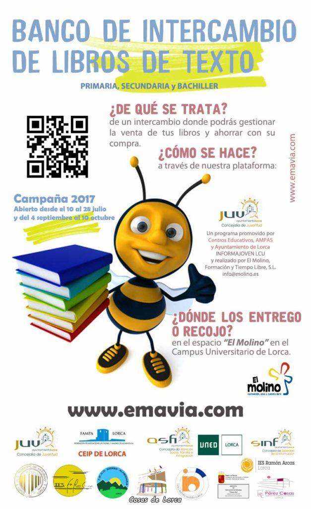 La Concejalía de Juventud del ha puesto en marcha la quinta edición del Banco de Intercambio de Libros de Texto para estudiantes de primaria y secundaria. El proceso de recogida y retirada empezó ayer y se alargará hasta octubre. Durante este tiempo, se podrá comprobar a través de la plataforma www.emavia.com el listado de todos los libros en depósito y aquellos otros que se utilizan en cada uno de los centros pertenecientes a Lorca.