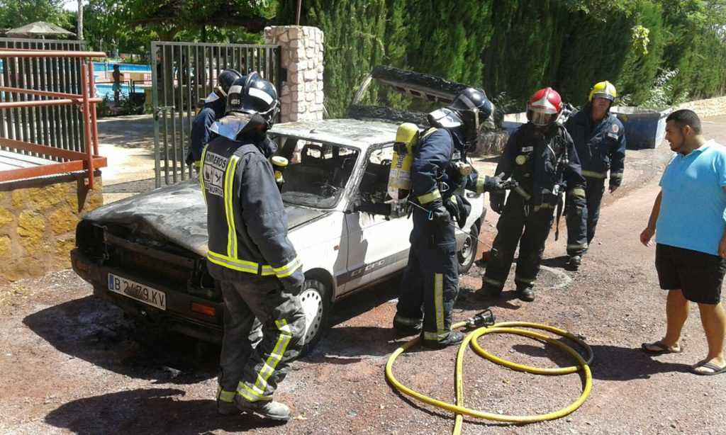 El Centro de Coordinación de Emergencias (112) recibió una llamada en torno a la una menos cuarto de la tarde alertando del incendio de un vehículo aparcado cerca del bar del recinto. El llamante indicaba que estaba ardiendo por la zona del motor.
