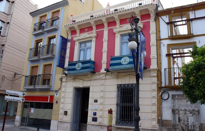 LA CASA DE LAS CARIATIDES, es un edificio Ecléctico (realizado con diferentes estilos) del siglo XIX. Es un bonito ejemplo de la arquitectura de la época de la Restauración. Construido por orden de Encarnación Escobar, y adquirido por la Cofradía religiosa Hermandad de Labradores “Paso Azul”, en subasta notarial el Viernes de Dolores de 1987.