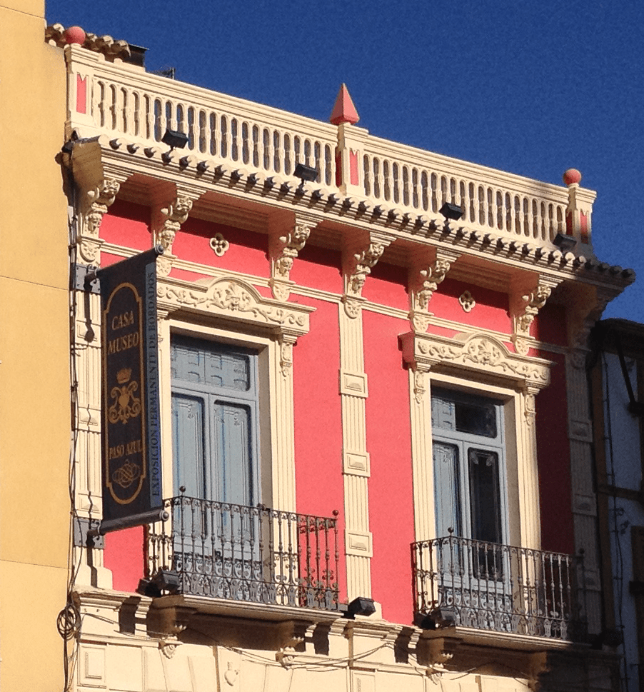La Casa de las Cariátides, Museo de Bordados del Paso Azul, fue construida en 1890. En su fachada se pueden apreciar las tendencias eclécticas que a finales del siglo XIX y primeros del XX caracterizaban la arquitectura en el levante español.
