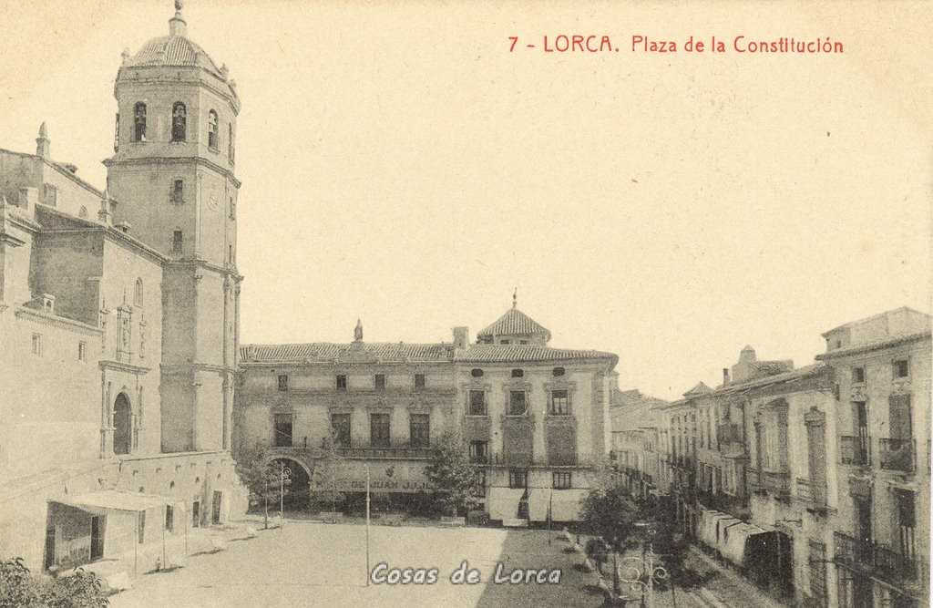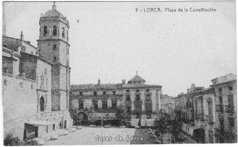 La Colegiata provocaría la demolición de la antigua muralla en este sector de la cerca lorquina, y sus Salas Capitulares se abrirían al nuevo espacio urbano que se estaba conformando. El Concejo de Lorca decidía la construcción de una nueva sede (el actual Ayuntamiento) mientras continuaban las obras de San Patricio, una vez que la antigua sede del Concejo en la Puerta medieval de Gil de Ricla se mostraba insuficiente. En una esquina de la plaza se situaría también la Casa del Corregidor, representante de la autoridad del Rey en la ciudad.