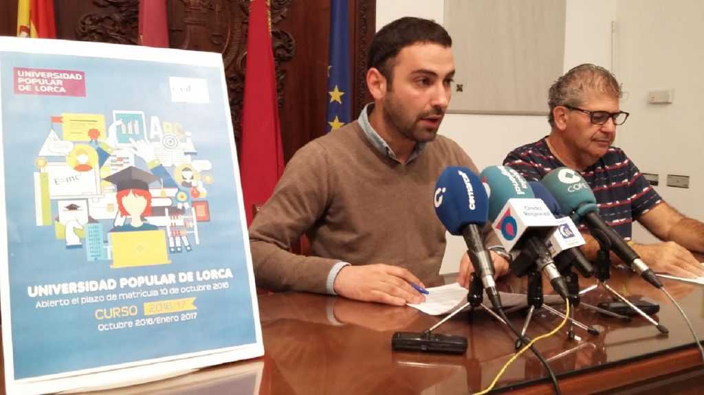 El Concejal de Cultura y Festejos en el Ayuntamiento de Lorca, Agustín Llamas, ha informado que ya está abierto el plazo de matriculación del programa de cursos que ofrece la Universidad Popular (UP). Los interesados pueden elegir entre 91 cursos, 18 de ellos gratuitos. Estos se van a desarrollar entre el día 20 de octubre hasta los últimos días de enero de 2017, siendo el número de plazas 1.350.