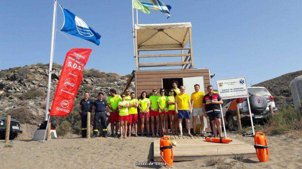 El dispositivo de la costa lorquina incluye 6 socorristas y una enfermera en el equipo de salvamento para los días de máxima afluencia, para así poder atender in situ cualquier emergencia. Junto con las tareas de vigilancia, rescate y salvamento, el personal de este Servicio desarrolla una importante labor medioambiental en la zona, comprobando posibles focos de fuego, interviniendo en la extinción de incendios de matorral y rescatando animales heridos y cetáceos que puedan quedar varados en las playas.
