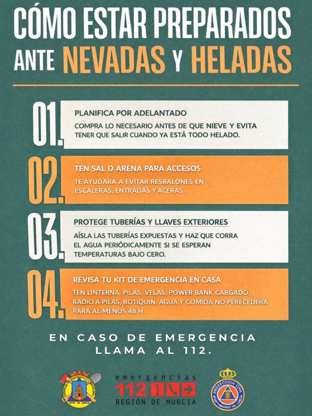 Asimismo, se ha instado a la Delegación del Gobierno en la Región de Murcia y al Gobierno regional, a que mantengan alerta sus servicios esenciales de su competencia en el municipio de Lorca durante el periodo de duración del riesgo de nevadas en nuestro municipio.