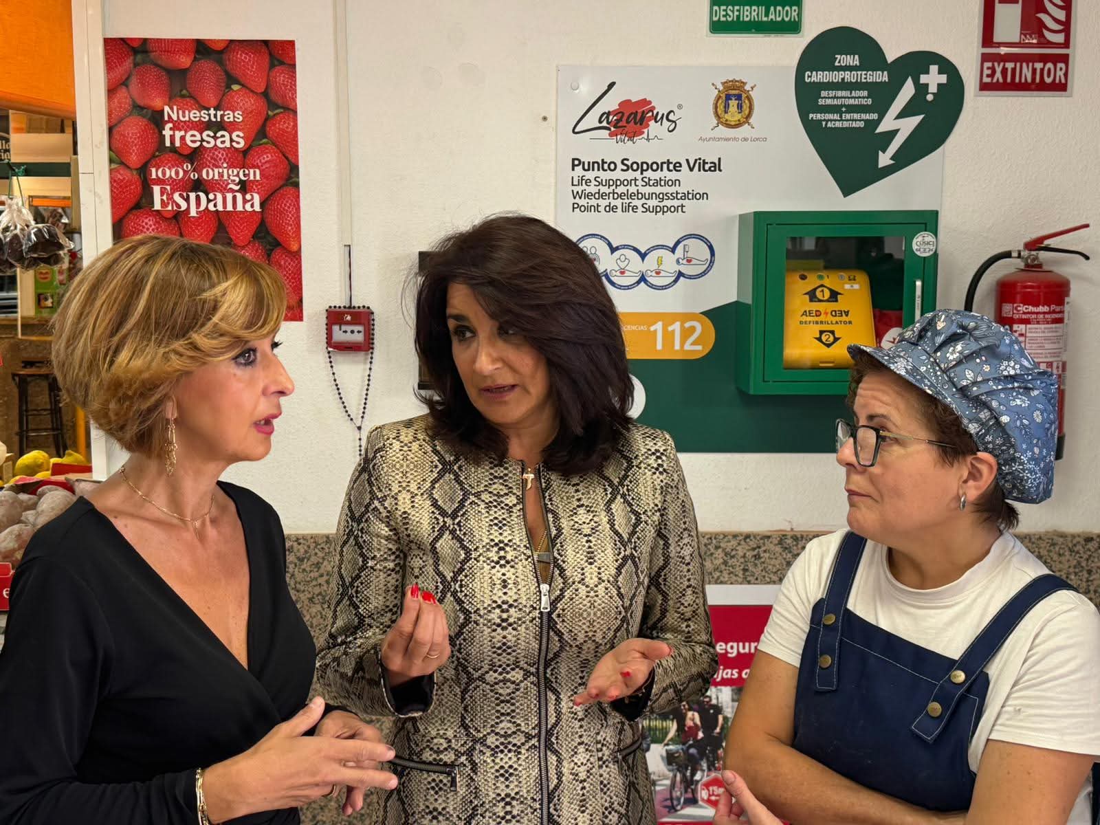 El Ayuntamiento de Lorca mantiene su compromiso con la seguridad e instala un desfibrilador en la plaza de abastos de la Alameda de Cervantes.