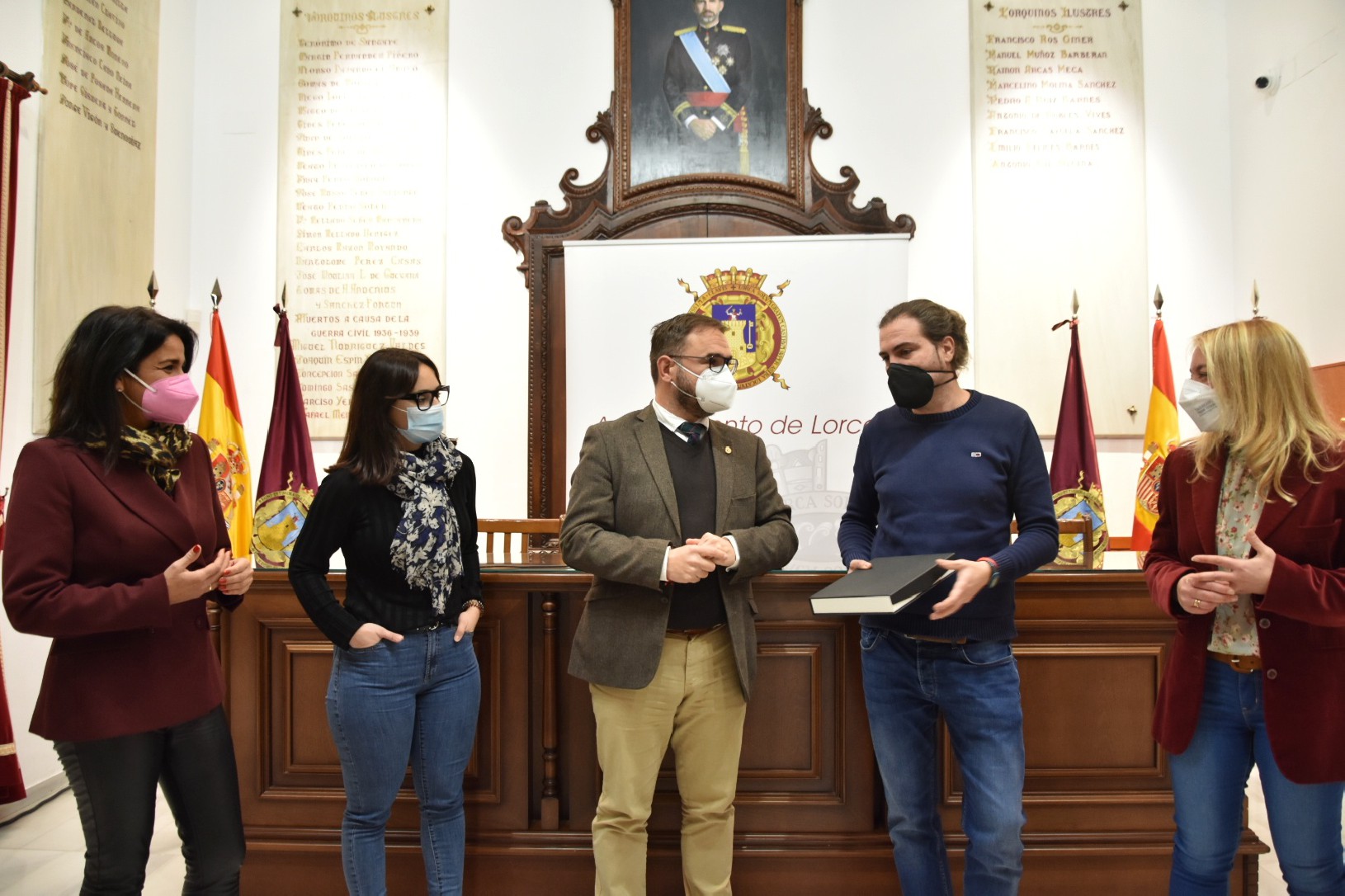 Diego José Mateos ha insistido en que “en Lorca tenemos un importante elenco de artistas de diferentes ámbitos de los que podemos sentirnos muy orgullosos, como hicimos hace unas semanas, con el ganador del Premio Planeta, Agustín Martínez, a quien también recibimos en el Ayuntamiento, y hoy hacemos lo propio con Jesús Martínez ‘Nota’”.