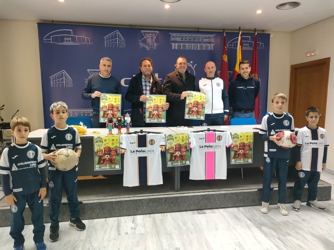 La Peña Lorca Club Deportivo celebrará el próximo 3 de enero el ‘XI Torneo de Reyes’, un evento deportivo destinado a las categorías prebenjamín y benjamín que tendrá lugar en el Club Deportivo Los Álamos de Lorca desde las nueve de la mañana y que marca el inicio de los eventos anuales de promoción del fútbol base. El concejal de Deportes, Juan Miguel Bayonas, junto con el presidente del club organizador, Antonio Reverte, ha presentado hoy este evento que combina deporte, convivencia y la magia propia de los días previos a la llegada de Sus Majestades de Oriente.