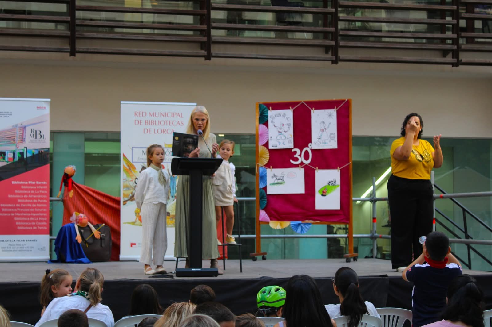 🐉 El programa de este aniversario contó con la participación de la edil de Educación, Rosa María Medina; el tándem de abuelo y nieto Paco Montiel y Paco Montiel; el grupo Coros y Danzas de Lorca; las bibliotecarias Susana de Torres y Luisa María García; y alumnos del Colegio San Francisco de Asís, entre otros. También subió al escenario el Mago Lucas, que unió magia y cuentos en un espectáculo para toda la familia.