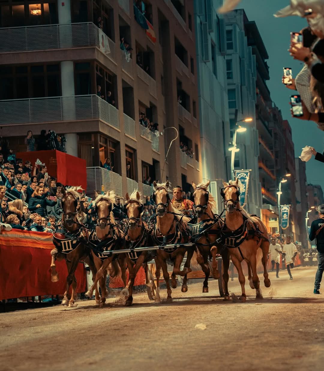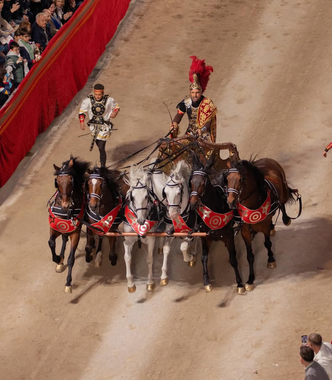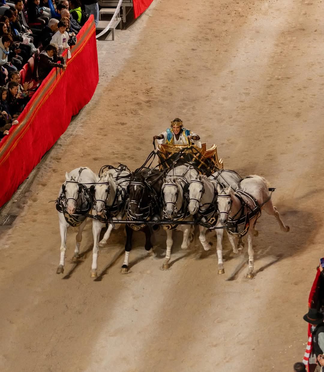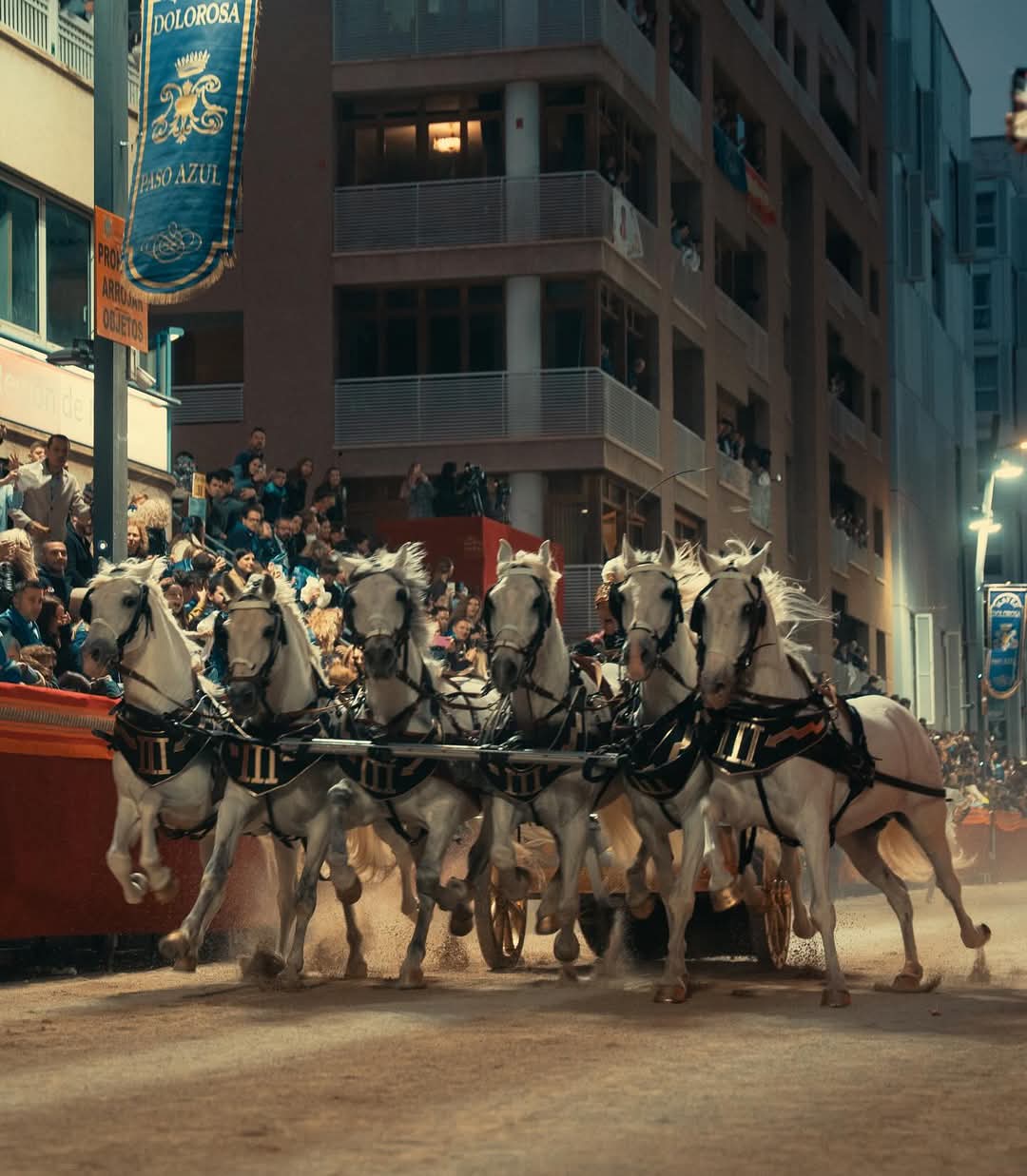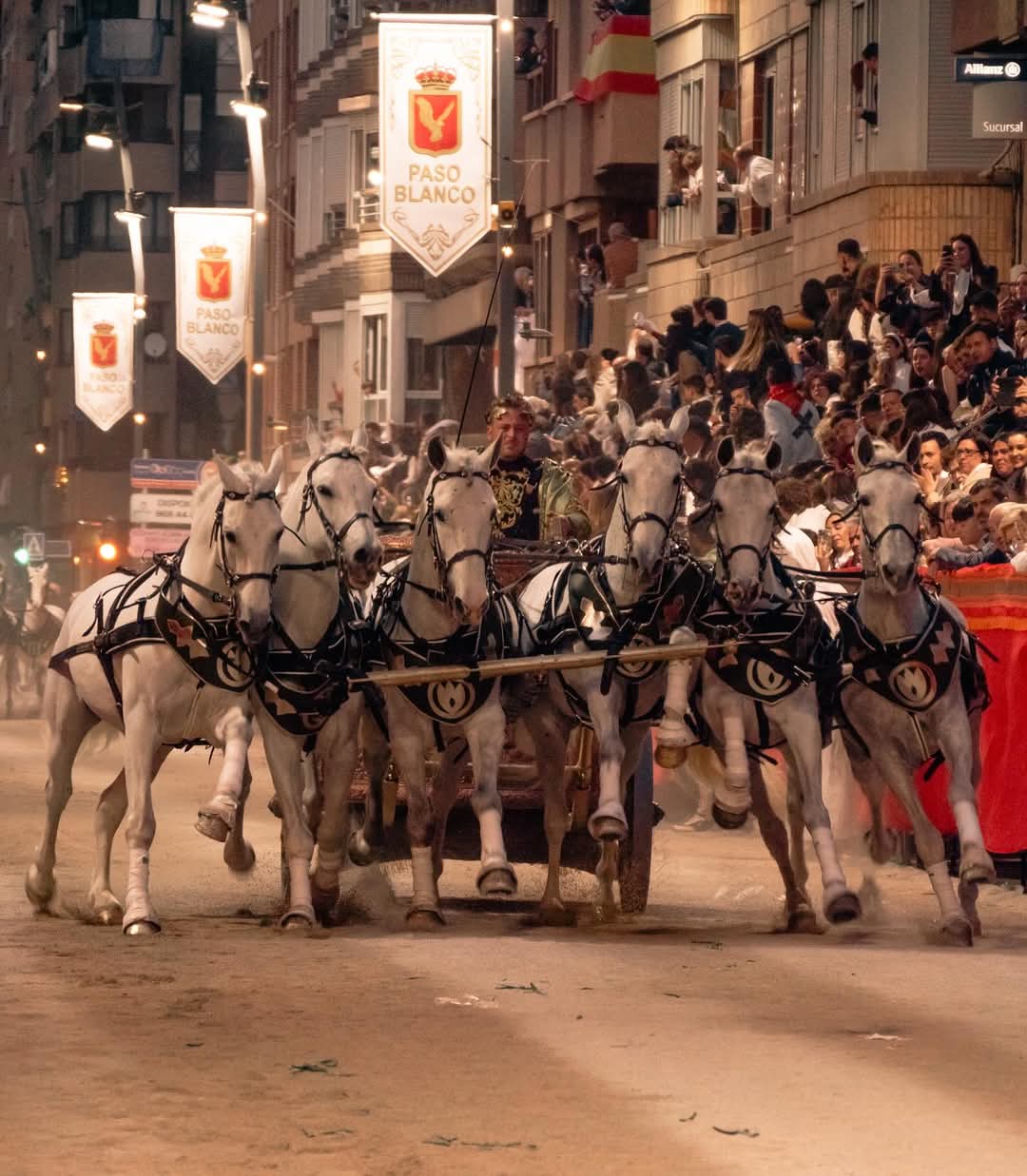 El Paso Blanco apuesta una vez más por el espectáculo en su procesión de Viernes de Dolores, en la que han tenido el total protagonismo los emperadores romanos. Ocho carros tirados por seis caballos, conocidos como sigas, han provocado el aplauso de los espectadores a su paso por la carrera. Los personajes que han procesionado han sido los siguientes: