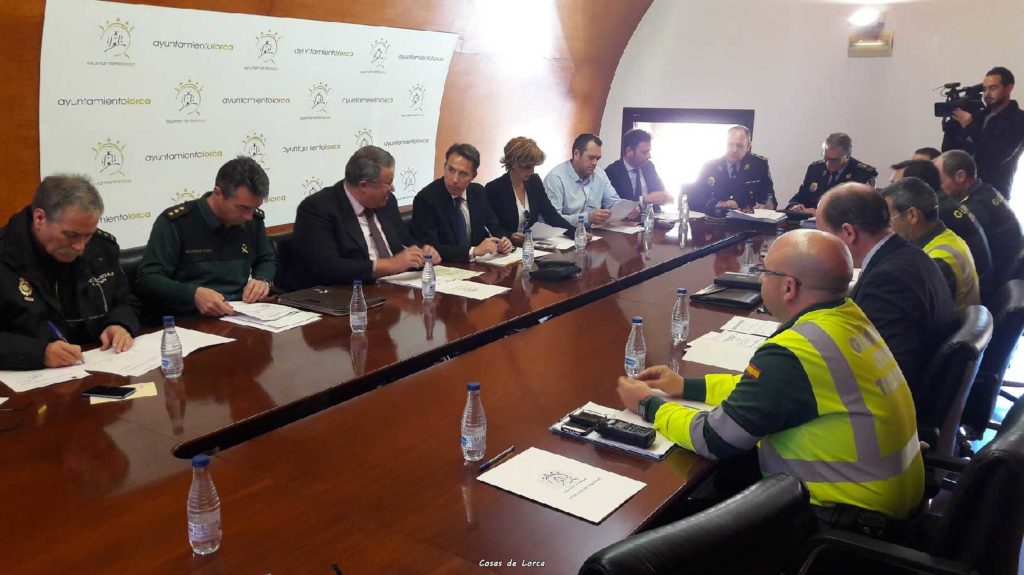 El Alcalde de Lorca, Fulgencio Gil, junto al Delegado del Gobierno en la Región de Murcia, Francisco Bernabé, han presidido esta mañana la reunión de la Junta Local de Seguridad, que tiene como objetivo prioritario la coordinación de todos los servicios de seguridad y auxiliares que son precisos para poder garantizar el correcto desarrollo de todos los eventos que tienen lugar en nuestra ciudad con motivo de la Semana Santa. Esta sesión de puesta en común ha contado con representantes de Guardia Civil, Policía Nacional y Policía Local,