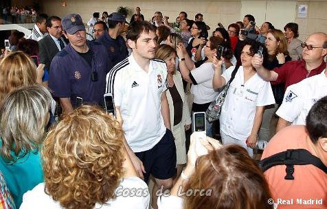 Después de su visita al Ayuntamiento, el autocar del Madrid salió con dirección a la zona de la viña, la parte más afectada por el terremoto, donde esperaban cientos de seguidores. El autocar sólo se detuvo a la salida del barrio para que los capitanes se dirigieran en una furgoneta hasta el Hospital de la Virgen de la Arrixaca, donde se encuentran ingresados dos niños de 4 y 6 años heridos por el terremoto.
