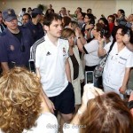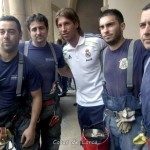La imagen más emotiva llegó de Juan Carlos, el padre de un niño que murió en la zona de la viña al desplomarse una fachada. Se acercó con sus dos hijos hasta Casillas y Ramos para darles las gracias por el gesto. Los futbolistas se mostraron cariñosos con él y Florentino le mostró su pesar.
