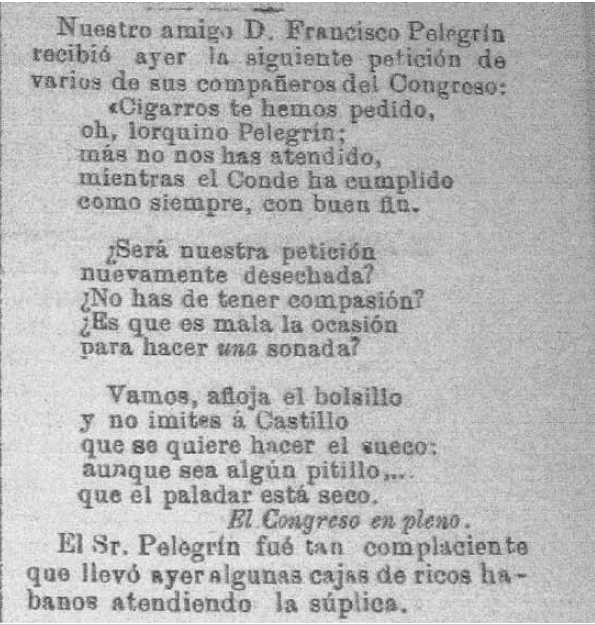 Mariano Pelegrín Campoy, único hijo varón de Francisco murió el día 12 de noviembre de 1889 a los 23 años de edad, “víctima de esa enfermedad maldita, que mata lentamente, llenando el cerebro de ilusiones y de mágicos ensueños para que no veamos acercarse la negra silueta de la muerte…” según la describía una crónica periodística de la época.