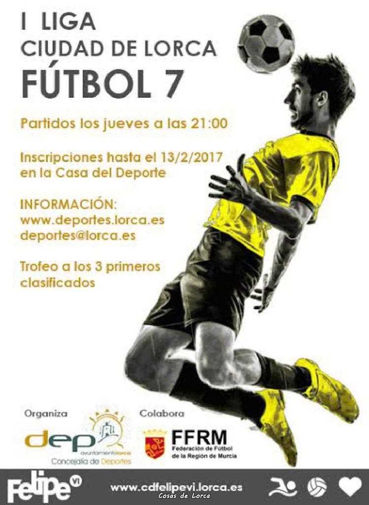 El Concejal de Deportes ha destacado que “la I Liga Ciudad de Lorca Fútbol 7” comenzará el 16 de febrero, celebrándose los partidos los jueves a partir de las 21:00 horas, en el campo de fútbol que corresponda. El plazo de inscripción está abierto hasta el próximo lunes 13 de febrero a las 14:00 horas en las oficinas de la Concejalía de Deportes. La cuota de inscripción es de 25 € por jugador, más 50 € de fianza por equipo, que se devolverá al finalizar la competición. Cabe destacar que para que un equipo se encuentre formalmente inscrito y tenga derecho a entrar en sorteo, deberá, antes que se realice dicho sorteo, de no tener pendientes de pago trofeos anteriores y pagar la fianza y como mínimo el valor de 12 fichas. De no ser así, dicho equipo no entrará en sorteo”.