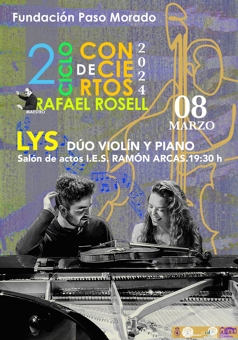 En esta ocasión, serán cinco, a diferencia del año pasado que fueron cuatro, los recitales que conformarán el programa musical de este 2024, que dará comienzo el viernes, 8 de marzo, a las 19:30 horas, en el salón de actos del IES Ramón Arcas, de la mano del Dúo Lys, a cargo de la gijonesa Susana Feito, al violín, y el lorquino Lázaro Fernández, al piano.