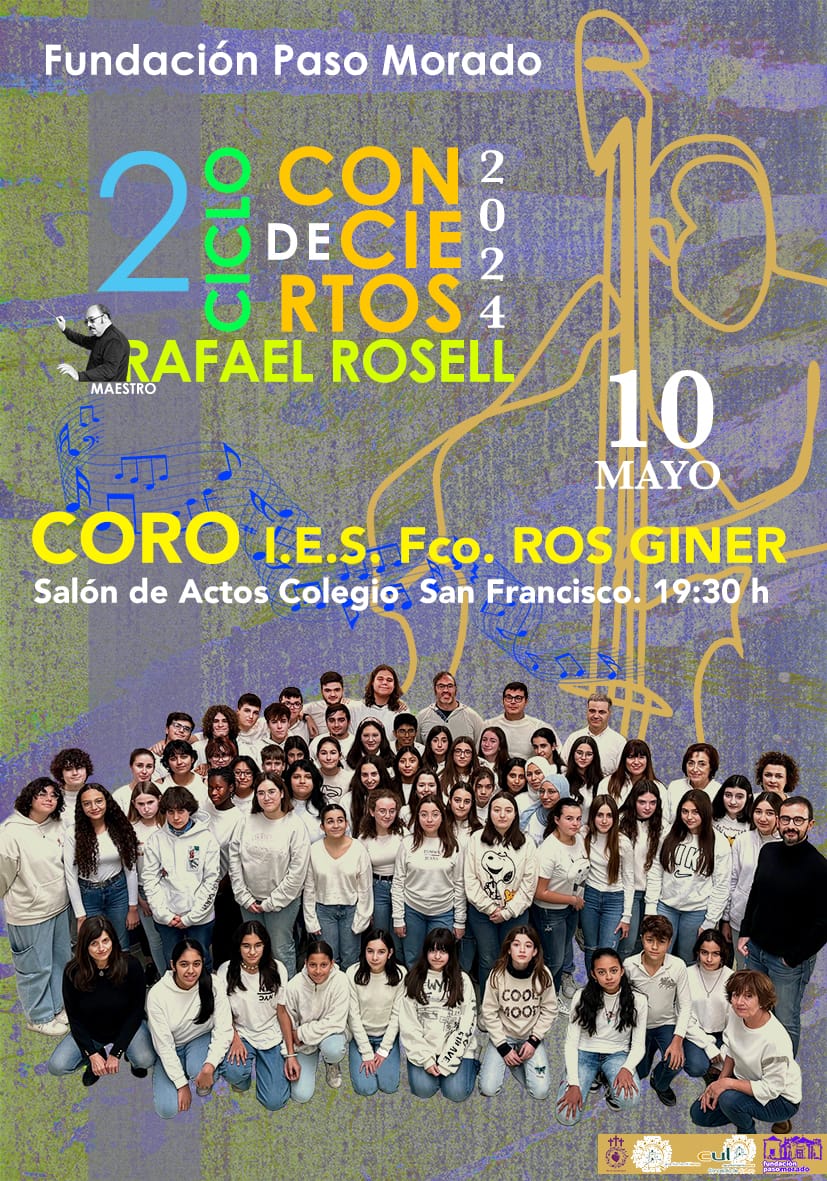 El 10 de mayo, viernes, el Coro IES Fco. Ros Giner protagonizará el cuarto de los conciertos. Será en el salón de actos del Colegio San Francisco, a las 19:30 horas, donde el público podrá disfrutar de las extraordinarias y melodiosas versiones protagonizadas por estos jóvenes, que seguro arrancan más de un aplauso durante la velada.