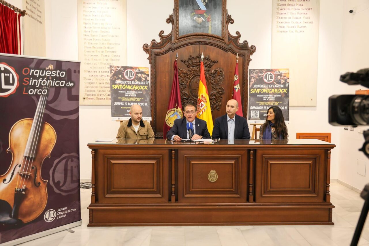 El concejal de Cultura del Ayuntamiento de Lorca, Santiago Parra, acompañado por el presidente de la Asociación Orquesta Sinfónica de Lorca, Antonio Meca, y el director de la agrupación, Ginés Martínez, ha anunciado una nueva cita cultural en torno a la música que tendrá lugar el próximo mes de marzo, en el Auditorio Margarita Lozano, y que se incorpora a la programación en el municipio prevista desde la Concejalía, incrementando con ello la Agenda de Eventos de este 2026.