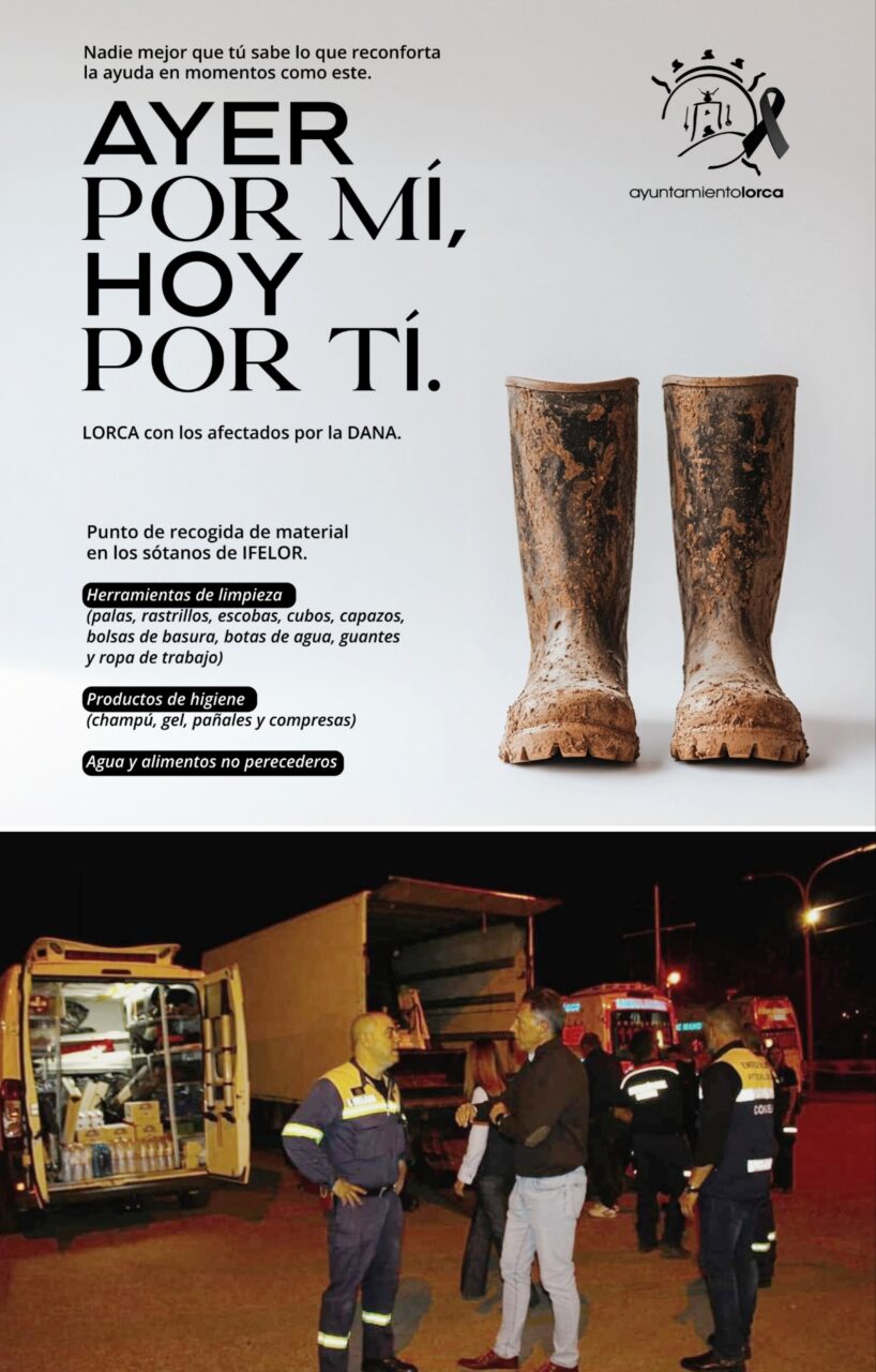 En Ifelor se iniciaba a primera hora de la tarde de este viernes la recogida de alimentos no perecederos, productos de higiene personal y limpieza y ropa. El operativo también era supervisado por el alcalde, el edil de Emergencias y la portavoz del Gobierno de Lorca. Un nuevo operativo podría viajar hacia Valencia en las primeras horas. «Las previsiones son que agentes de la Policía Local se desplacen a partir de este sábado a la zona afectada con el objetivo de colaborar en las tareas de asistencia directa a los afectados».