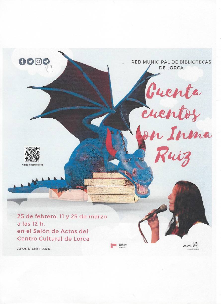 La Red Municipal de Bibliotecas de Lorca organiza la actividad infantil ‘Cuentacuentos con Inma Ruiz’ los sábados 25 de febrero, 11 y 25 de marzo.