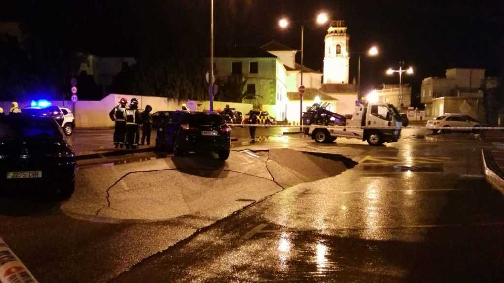 El dispositivo municipal de seguridad ha acordonado un área de 4×6 metros en el aparcamiento de salones El Faroli por hundimiento del firme después de rescatar ilesa a la persona que conducía el vehículo afectado.
