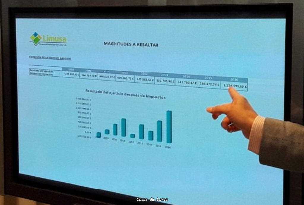 Francisco Jódar ha informado que con 1,22 millones de euros de beneficios al cierre del ejercicio 2016, Limusa atesora el mejor resultado económico a final de año de toda su serie histórica, firmando, además, el décimo balance consecutivo en positivo. Con esta cifra casi se multiplica por diez el resultado final de hace cinco años (126.000 euros en 2012) y constata su capacidad para obtener recursos gracias, entre otros factores, a la buena evolución operativa. Además, los gastos financieros se han visto reducidos en un 95,27% respecto a 2008.