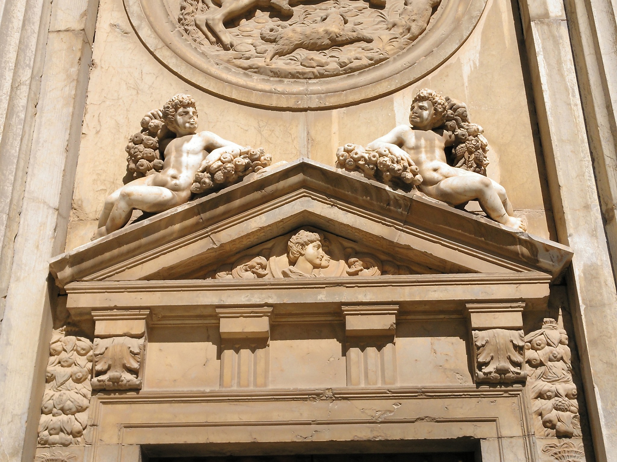 La posición de estos niños es muy del gusto renacentista y son el trasunto, salvando las distancias, de las figuras marmóreas que esculpió el genial Miguel Ángel Buonarrotti en las tumbas Mediceas (1519-1534 ubicadas en la basílica de San Lorenzo en Florencia. La disposición de las corpulentas y musculadas esculturas de La Aurora y El Crepúsculo, sobre la sepultura de Giuliano y La Noche y el Día sobre la de Lorenzo, son las precursoras de la disposición de los “duendes” del Museo, así como la de otras figuras desnudas dispuestas en importantes edificios renacentistas españoles, como tuve la fortuna de comprobar recientemente en los viajes llevados a cabo para supervisar el montaje de piezas del Arqueológico de Lorca en dos importantes exposiciones organizadas en Granada y Alcalá de Henares.