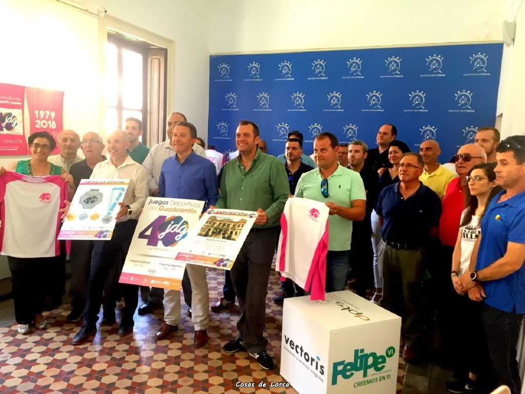 El Alcalde de Lorca, Fulgencio Gil, ha presentado los XL Juegos Deportivos del Guadalentín, que se celebrarán del 7 de septiembre al 12 de octubre ofreciendo más de 70 actividades deportivas, entre las que destacan las pruebas populares. Gil ha destacado que “se trata de una edición muy especial de las olimpiadas lorquinas porque no todos los años se cumplen cuatro décadas. Con el objetivo de conmemorar esta efeméride y hacer balance de todo lo conseguido vamos a desarrollar un amplio programa cultural durante los meses de junio y julio que incluirá un exposición antológica, cine, conferencias y la edición de una revista y un documental”.