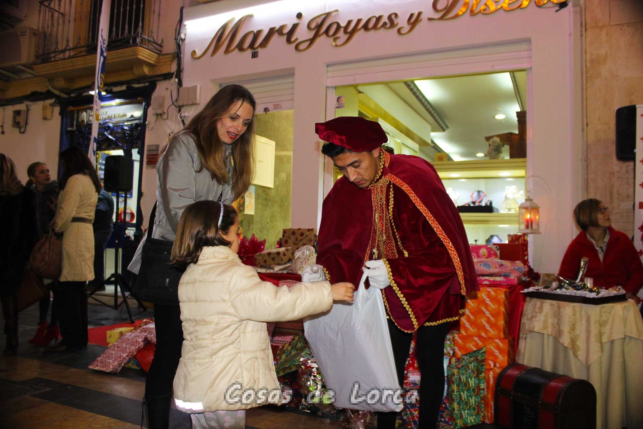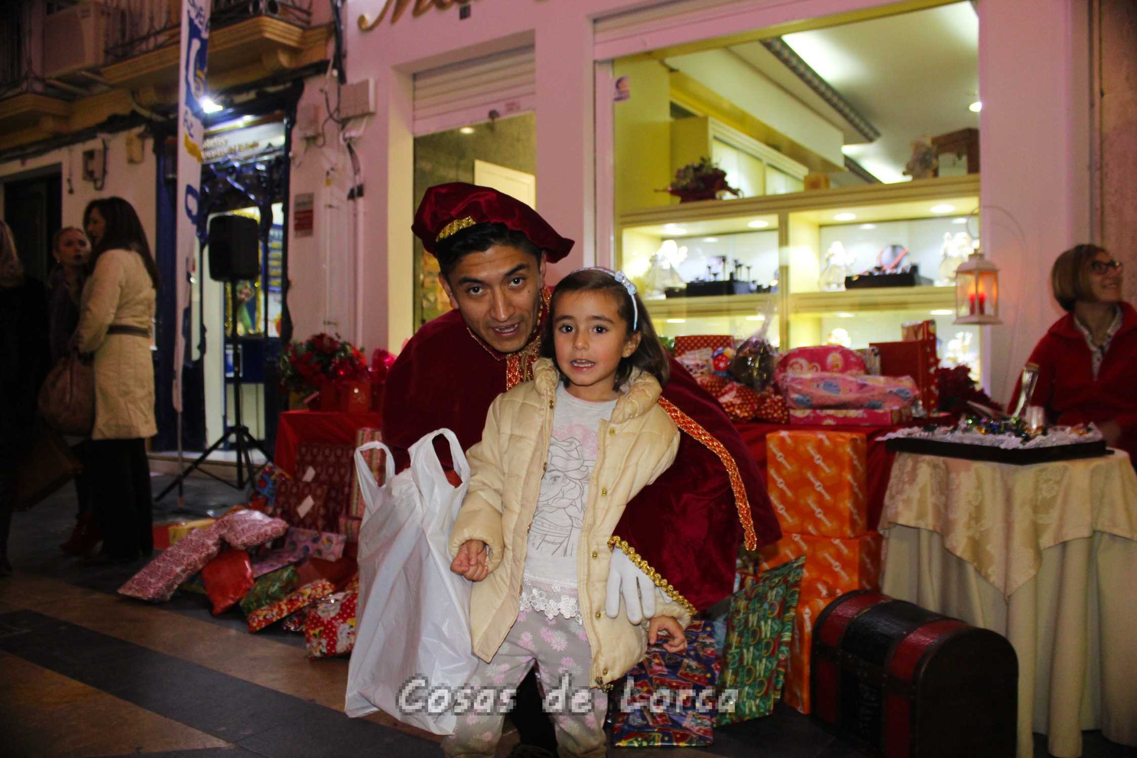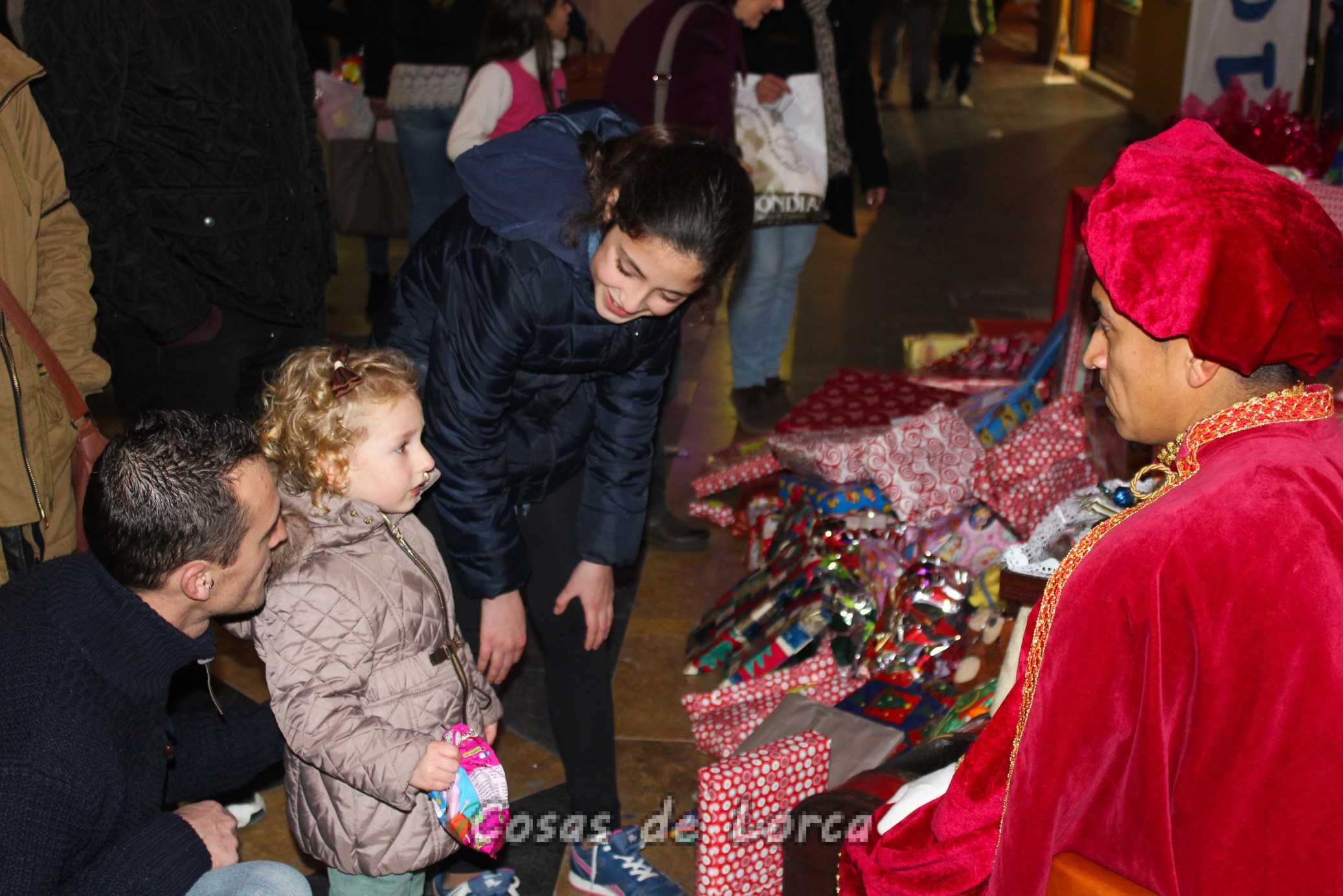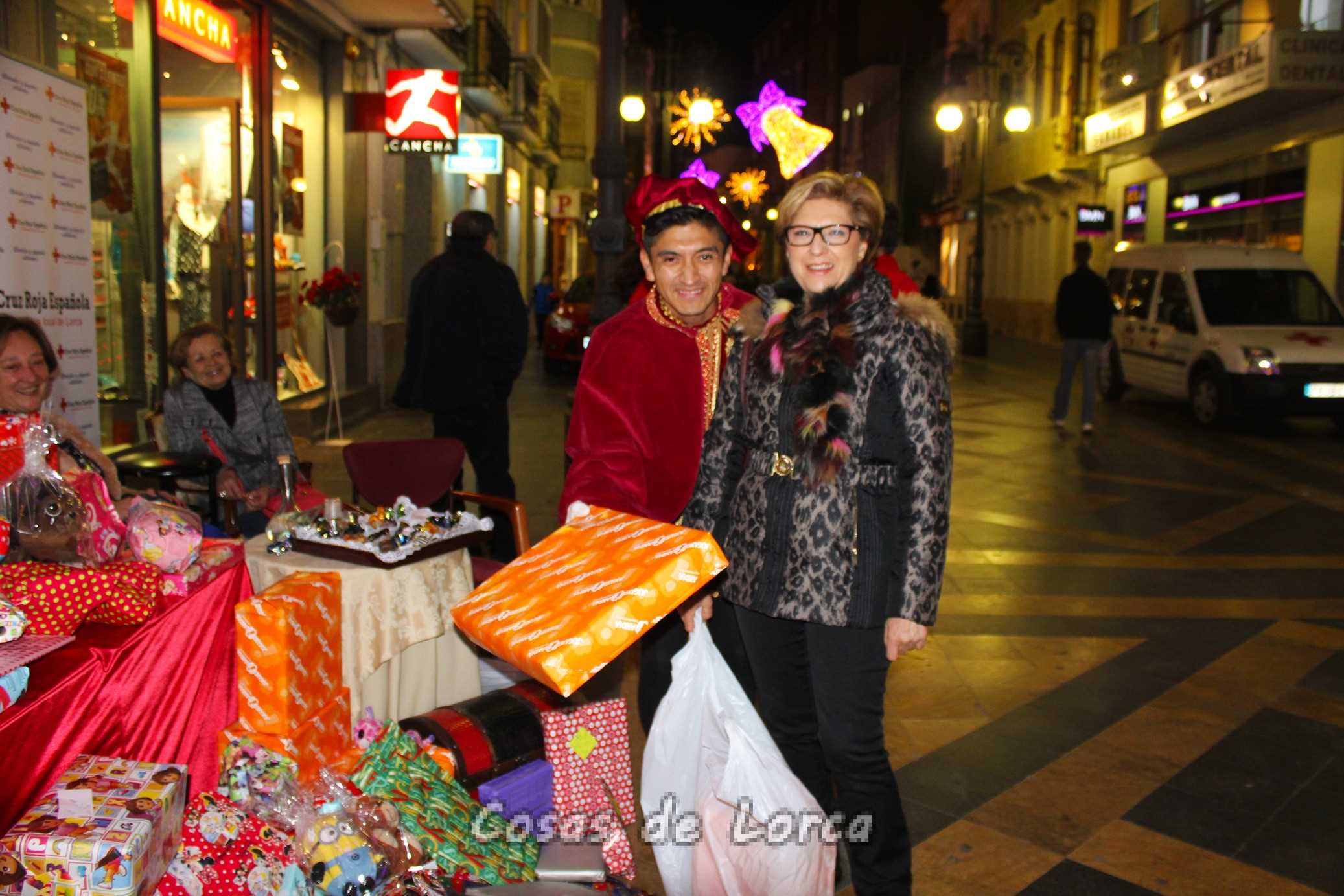 Muchas gracias a los miembros de Cruz Roja de Lorca encabezados por su presidenta Conchi y sus chicas, como encargados de la recogida y entrega de los regalos a sus majestades los Reyes Magos representados por un Paje Real que recibió con mucho cariño todas las peticiones de los niños y mayores.