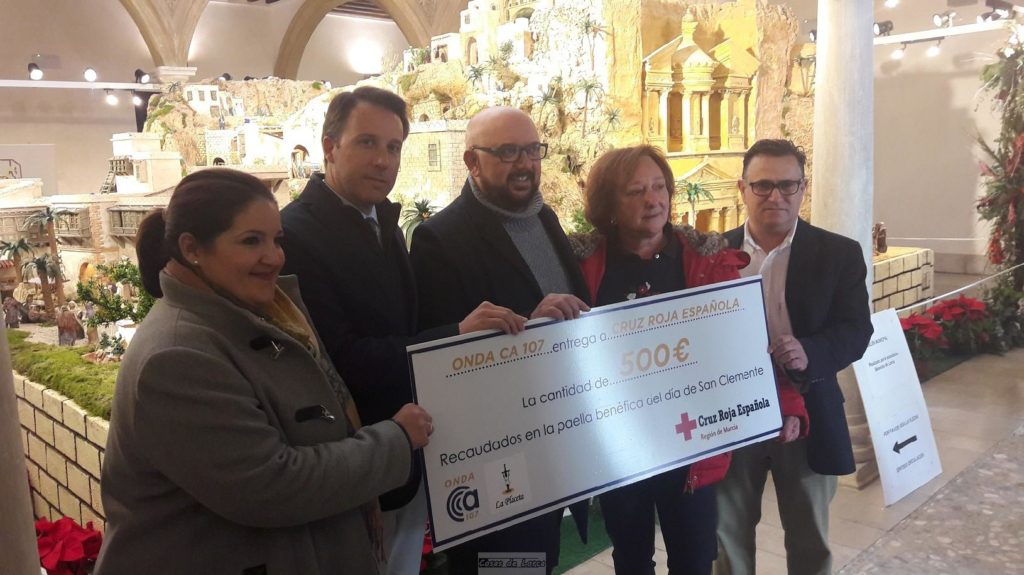Onda Ca107 y La Placeta entrega a Cruz Roja Lorca la recaudación de la paella gigante solidaria que realizaron estos medios de comunicación con motivo del Patrón de la ciudad.