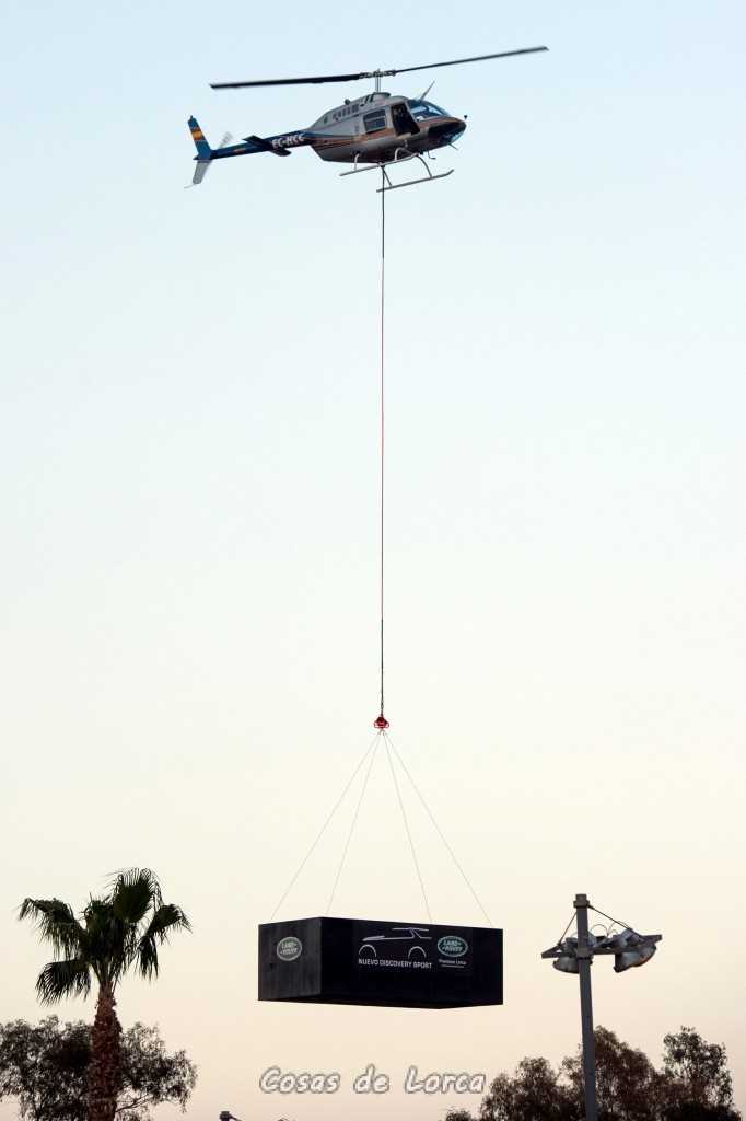 La ´puesta de largo´ del nuevo Discovery Sport tuvo como escenario los singulares jardines del Hotel Amaltea, donde los más de cuatrocientos invitados fueron llegando desde las 18:00 horas. Poco después un atronador sonido despertó la atención de los presentes, mientras daban cuenta del copioso aperitivo que allí se sirvió, un helicóptero se acercaba a gran velocidad a la piscina en torno a la que se agrupaban los invitados. Del helicóptero pendía un enorme cajón con los logos de Land Rover. Cuando el helicóptero se situó en la vertical de los jardines y ante el asombro de los mismos, soltó el cajón que con gran estruendo se estrelló contra el suelo, justo en ese momentó, apareció el nuevo Discovery Sport que rodeó la piscina entre los aplausos del entusiasmado público.