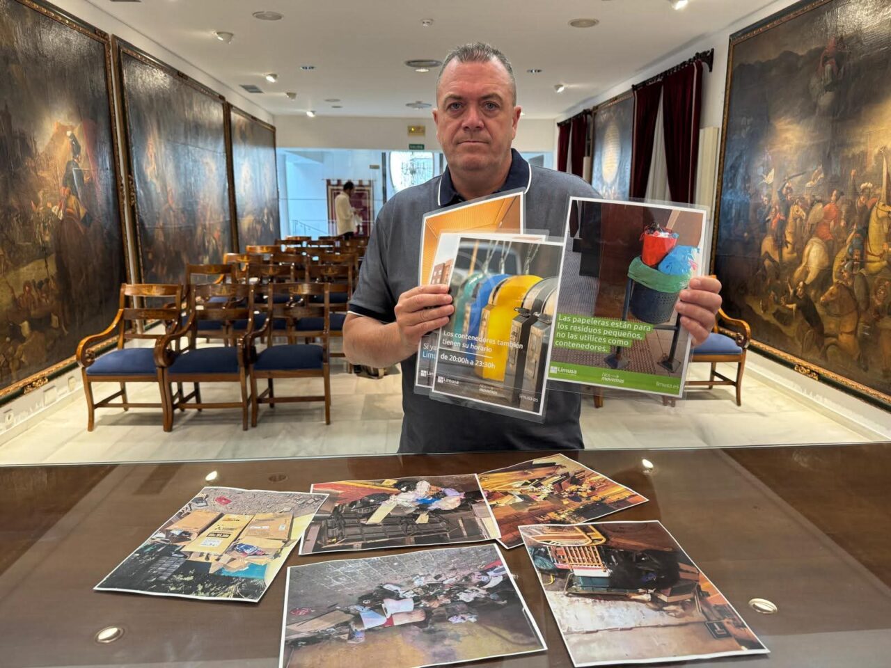 “Una imagen que comienza a ser algo habitual cada mañana es ver a personas que arrojan a primera hora bolsas de basura a los contenedores de residuos. Lo hacen en su trayecto al trabajo, al colegio donde dejan a sus hijos o mientras pasean a sus mascotas. Tenemos que desterrar estos hábitos que implican que esos recipientes de basura se llenen desde bien temprano y permanezcan así durante todo el día generando malos olores, dañando la imagen de nuestro municipio e incidiendo en la proliferación de plagas y en la salud pública”, ha afirmado de forma contundente el edil de Limpieza y Seguridad Ciudadana, Juan Miguel Bayonas López.