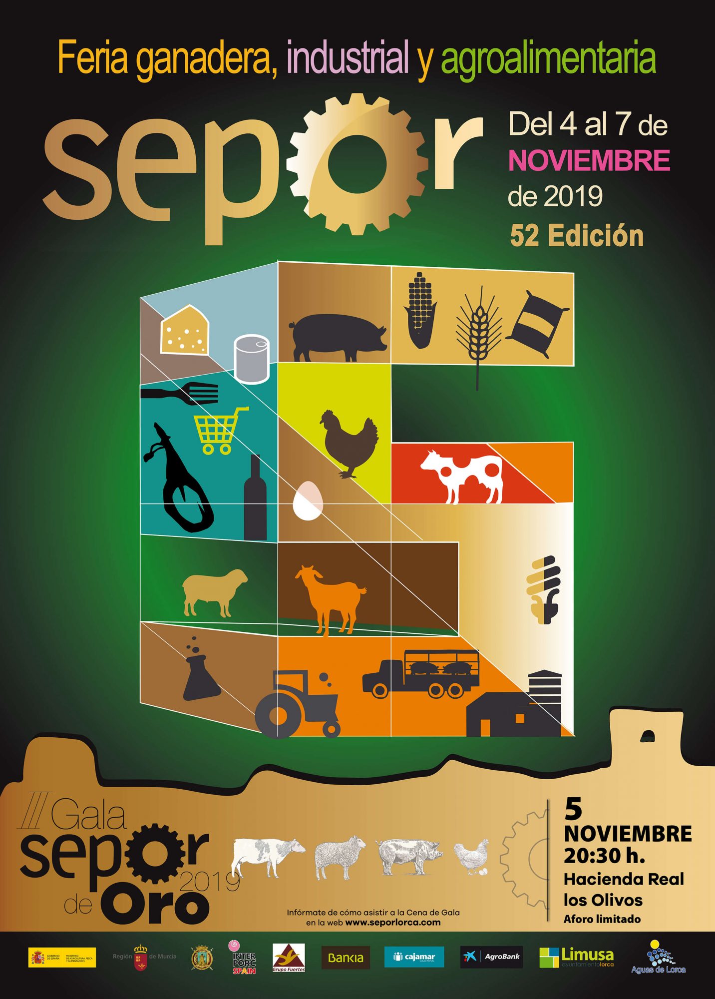 La Feria Ganadera, Industrial y Agroalimentaria de Lorca, SEPOR, celebrará del 4 al 7 de noviembre su 52º edición en el Centro de Ferias y Congresos de Lorca (IFELOR). El alcalde de Lorca y presidente de SEPOR, Diego José Mateos; el director general de Ganadería de la Comunidad Autónoma, Francisco José Espejo, la directora general de Comercio de la CARM, Carolina Espinosa, y la directora de la muestra, Patry Bermúdez, han presentado esta mañana en el Parador el cartel y el programa técnico del certamen que volverá a convertir a Lorca y a la Región de Murcia en referente nacional e internacional en promoción, investigación y compromiso con el sector.