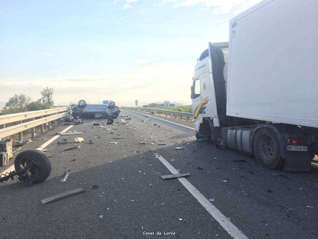 Sobre las 18 horas, se ha producido accidente de tráfico en la A-7 Murcia dirección Almería al chocar un vehículo con un camión.