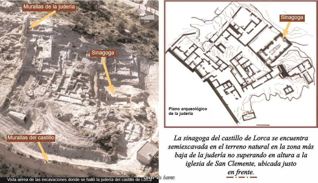En el caso de Lorca la presencia judía -teorizada durante décadas con acierto pero sin elementos materiales que la justificaran por reputados expertos como Cánovas Cobeño, Juan Torres Fontes, Andrés Martínez, Domingo Munuera o Manuel Muñoz Clares- ha quedado finalmente constatada con las excavaciones arqueológicas previas a la construcción del Parador Nacional de Turismo, que se realizaron a partir del año 2003 en el sector oriental del castillo de Lorca.