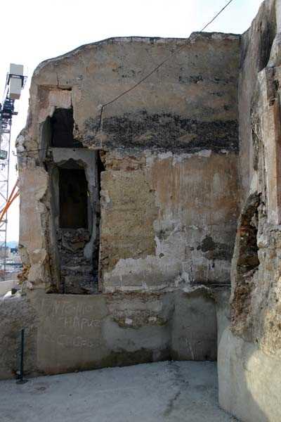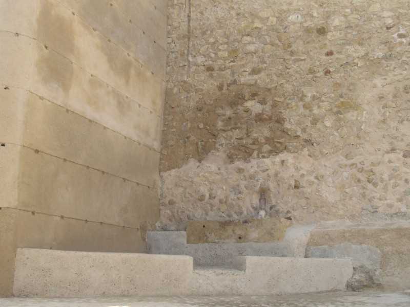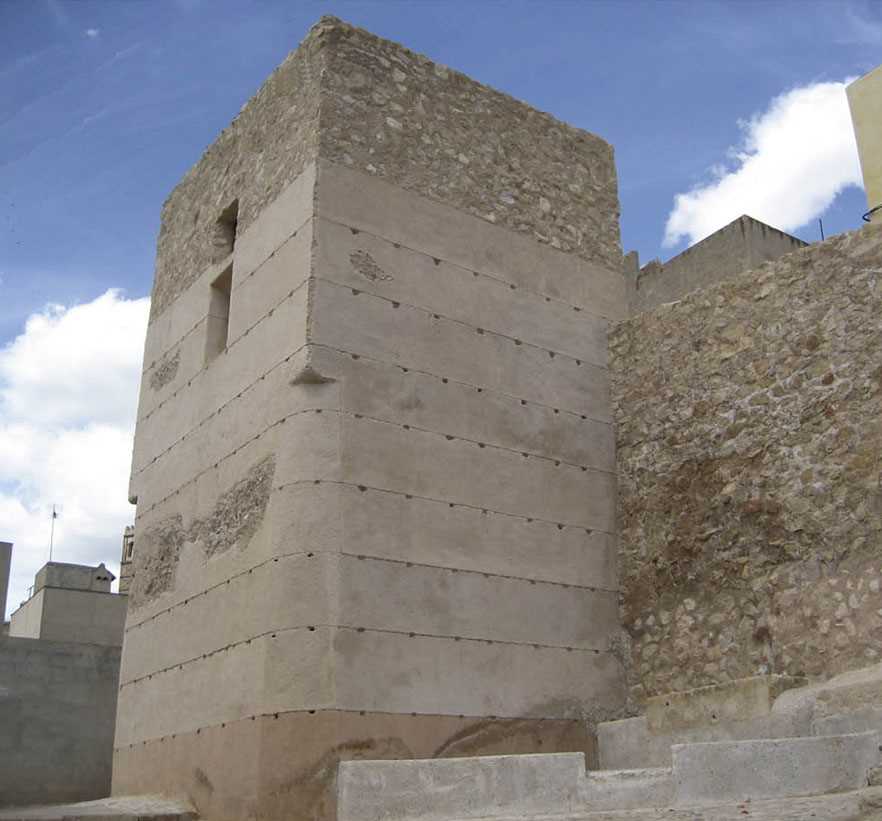 Actualmente se presenta prácticamente exenta por sus cuatro frentes, es decir, totalmente separada de los que son los lienzos de muralla.