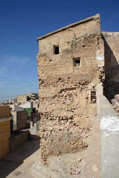 Se trata de una de las torres de la antigua muralla de la madina islámica de Lorca, construida en época almohade, a finales del siglo XII o principios del siglo XIII. Era un recinto defensivo exterior que protegía la población urbana; en lo alto de la cumbre del Cerro del Caño, donde en la actualidad está el Castillo, había otra muralla que protegía los edificios administrativos y militares que había en la alcazaba.