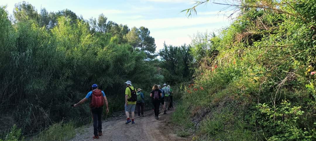 El último tramo lo hacemos por una rambla seca a cuyos márgenes hay bancales con olivos y pequeñas huertas con vides, nísperos cargados de frutos, granados con flores rojas. También hay chopos, álamos negros y redondos remolinos que guardan su fragilidad esperando que alguien les sople y si todos los pelillos se van pedir un deseo.