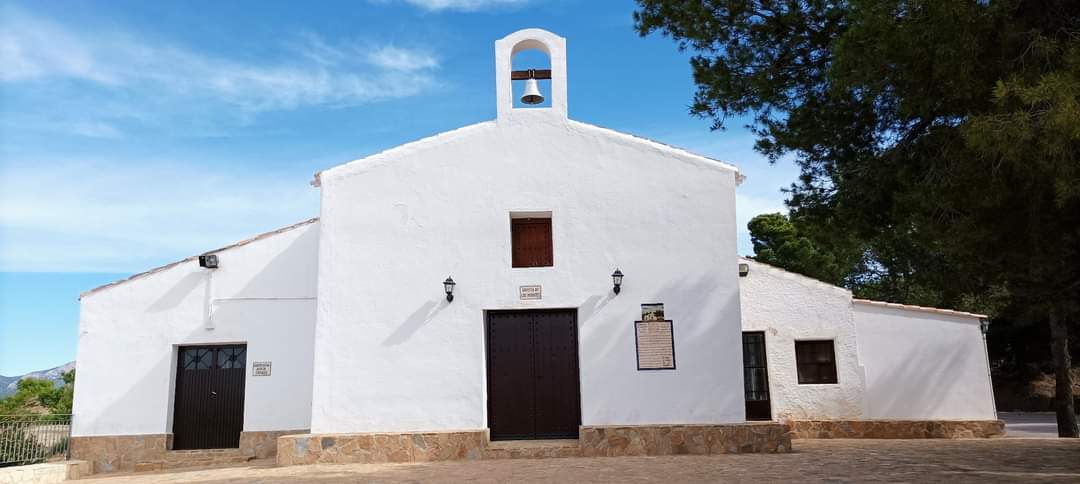 Después de casi 6 km hemos llegado a la plazoleta que se abre delante de la ermita de los Morotes, pequeño edificio religioso con las pareces enlucidas de un blanco luminoso donde destaca la pequeño campanario que corona la fachada con una campana que parece tener cierta antigüedad y que se encuentra barnizada de plata, así como una placa compuesta por una docena de azulejos esmaltados con una leyenda que cuenta de forma rimada la construcción de la ermita y la advocación de la Virgen de los Dolores.