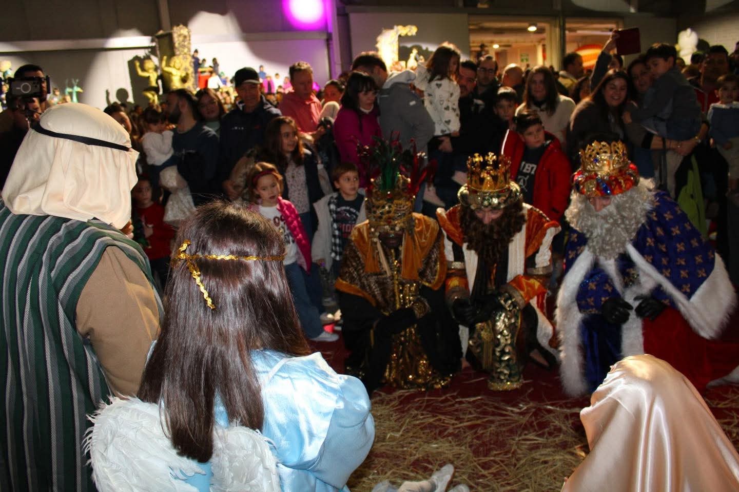 Unas 2.000 personas disfrutaban de la bienvenida y posterior recepción a los Reyes Magos en el Auditorio Margarita Lozano. Mientras, en los pabellones del complejo de Ferias y Congresos Francisco Jódar, más de medio centenar de técnicos de sonido, iluminación, escenografía, atrezzo… daban los últimos retoques a un mundo mágico y de ilusión, la ‘Casa de los Reyes Magos’, que abría sus puertas a primera hora de la tarde. Un escenario accesible presidía el pabellón de mayores dimensiones. Un camino de moqueta roja conducía hacía el escenario, y un espacio que se habilitó para acoger el pesebre. Los Reyes Magos adoraban al Niño Jesús en presencia de sus padres, José y María, y de los pastores, lavanderas y ángeles.